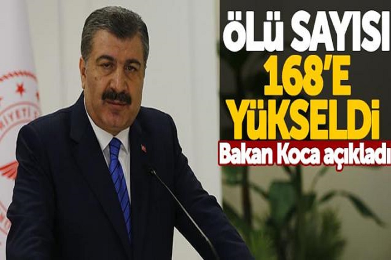Sağlık Bakanlığı, bugün yapılan 11 bin 535 testten bin 610’unun pozitif çıktığını, 37 kişinin ise yaşamını yitirdiğini duyurdu. Salgın nedeniyle toplam hayatını kaybedenlerin sayısı 168’e yükselmiş oldu.  Sağlık Bakanı Fahrettin Koca, ‘Türkiye Günlük Koronavirüs Tablosu’nu Twitter hesabından paylaştı. Sağlık Bakanlığı’nın internet sitesinden de paylaşılan tabloya göre; bugün yapılan 11 bin 535 testten bin 610’u pozitif çıktı. 37 kişi ise koronavirüs nedeniyle hayatını kaybetti. Tabloda toplam rakamlara da yer verildi. Buna göre; toplam test sayısı 76 bin 981, toplam vaka sayısı 10 bin 827, toplam vefat sayısı 168, toplam yoğun bakım hasta…